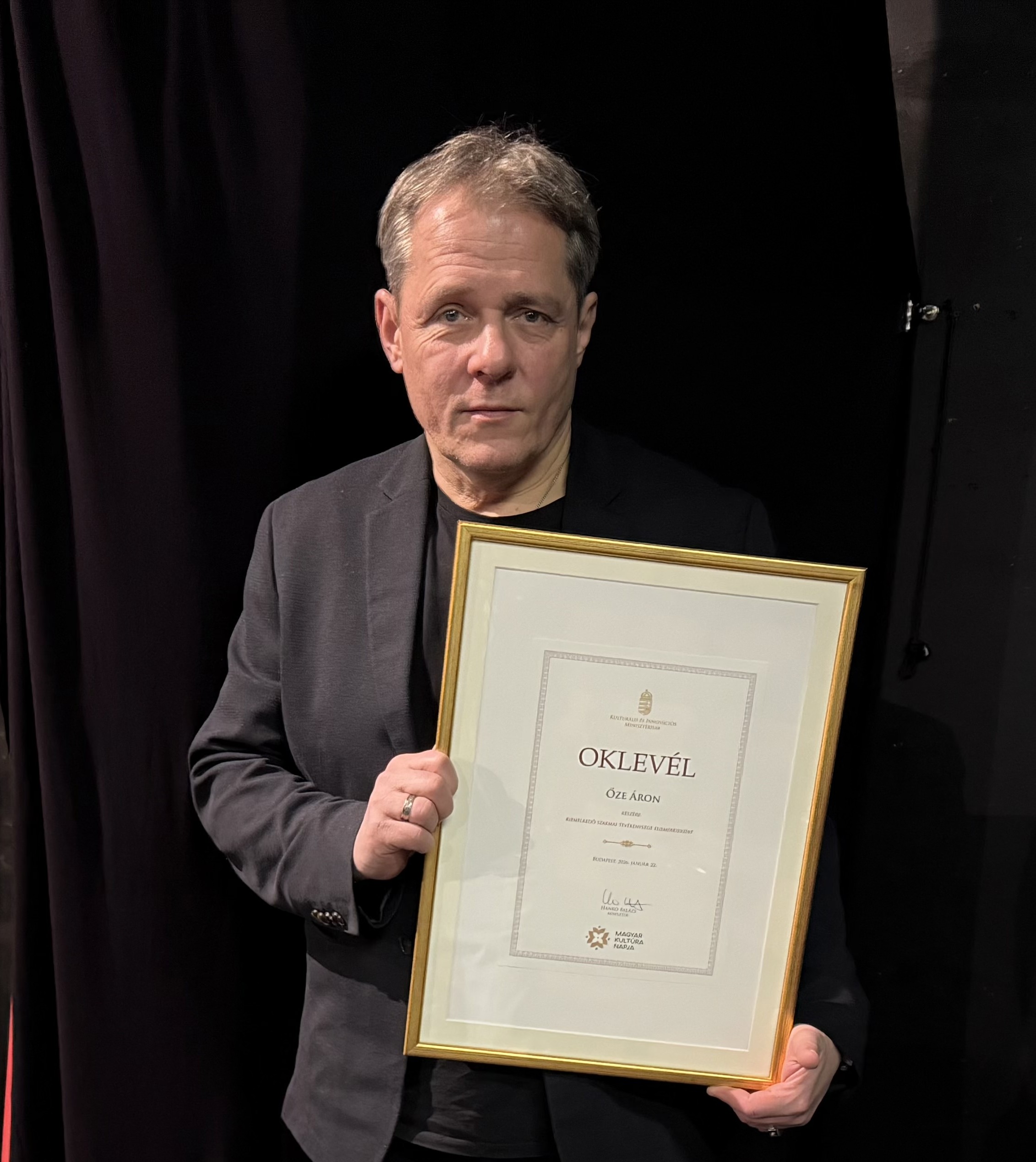 Őze Áron, a Bartók Színház igazgatója a Magyar Kultúra Napján a Kulturális és Innovációs Minisztérium oklevelét kapta „kiemelkedő szakmai tevékenysége elismeréseként”. Gratulálunk! Őze Áron színészként, rendezőként, intézményvezetőként mindig abból indul ki, hogy a kultúra nem önmagáért való teljesítmény, hanem párbeszéd. Ő a Bartók Színház élén is ezt képviseli: következetes gondolkodást, nyitottságot, szakmai fegyelmet, közösségi érzékenységet, mértéktartást és világos értékválasztást.